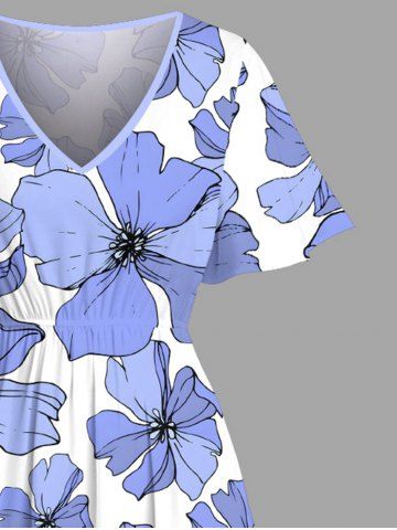 Costume de Plage Grande Taille Imprimé à Fleurs Assorti pour la Plage - Bleu - Bleu