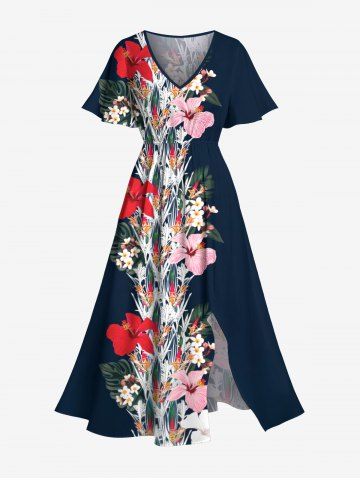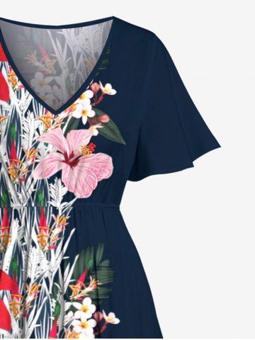 Tenues Hawaïennes Assorties > Costume de Plage Grande Taille Imprimé à Fleurs et Feuilles Assorti