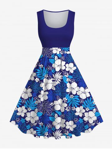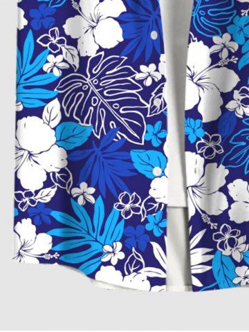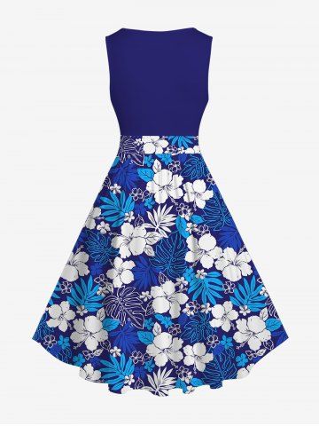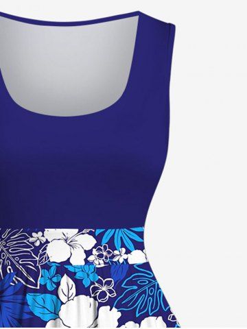 Costume de Plage Grande Taille Imprimé à Fleurs et Feuilles Tropicales - Bleu - Bleu