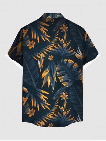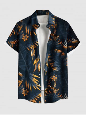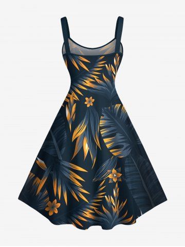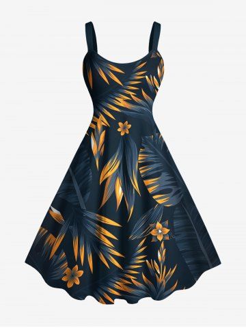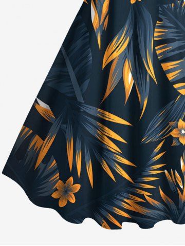Costume de Plage Grande Taille Imprimé à Fleurs et Feuilles Tropicales - Bleu De Minuit