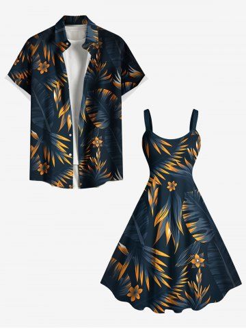 Tenues Hawaïennes Assorties > Costume de Plage Grande Taille Imprimé à Fleurs et Feuilles Tropicales