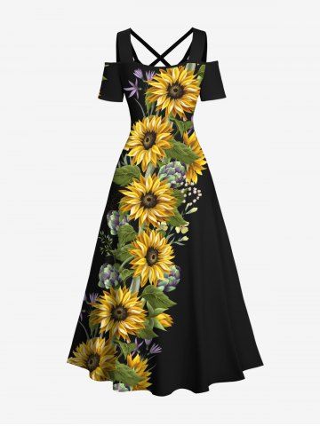 Costume de Plage Grande Taille Imprimé Feuilles Elégantes pour la Plage - Noir - Noir