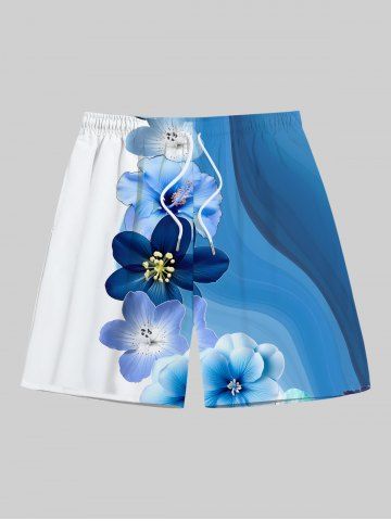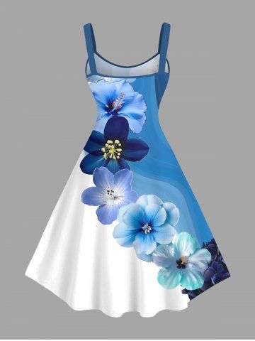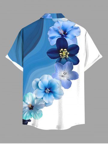 Tenue de plage hawaïenne assortie grande taille avec imprimé floral ombré et peinture à l'encre pour couples - Bleu - Bleu