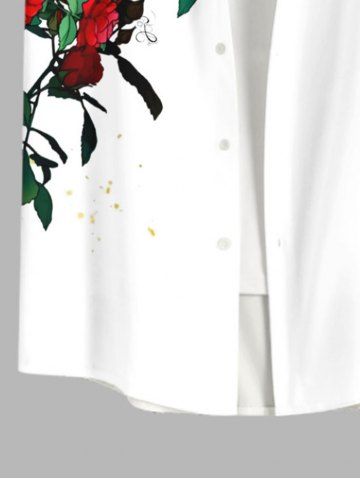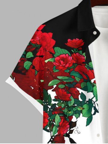 Costume Trapèze Grande Taille Imprimé à Feuilles et Fleurs Grimpantes Contrastant - Multi-a