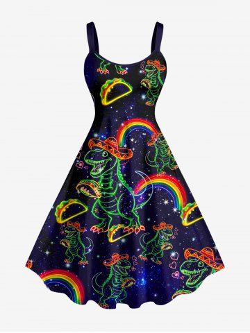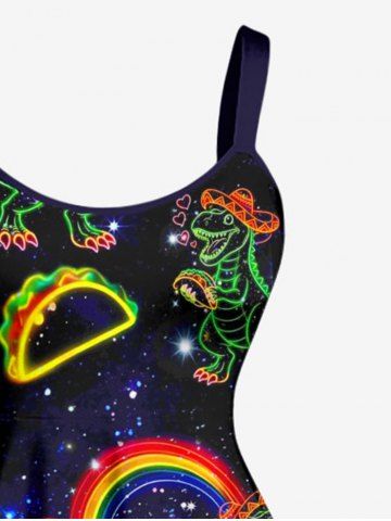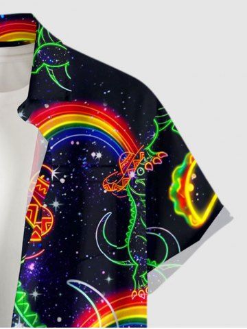 Dinosaur Rainbow Hot Dog Heart Galaxy Print Plus Size Matching Hawaii Beach Outfit For Couples - Noir - Noir