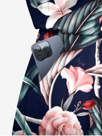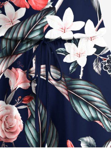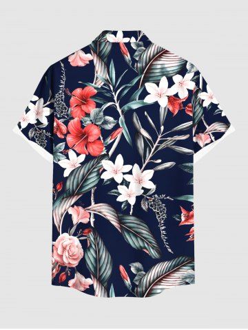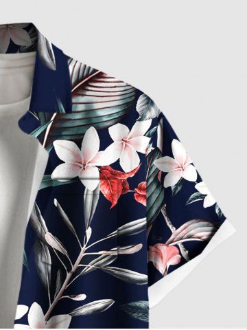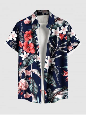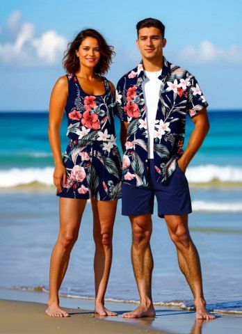 Tenues Hawaïennes Assorties> Ensemble chemise et barboteuse hawaïennes assorties, grande taille, imprimé feuilles tropicales et fleurs d'hibiscus, pour couples