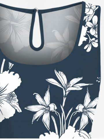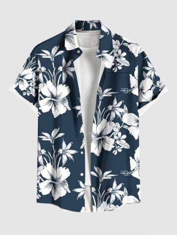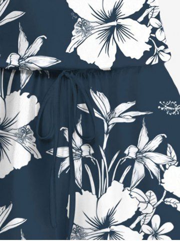 Ensemble chemise et barboteuse hawaïennes assorties, grande taille, tenue de plage, imprimé feuilles tropicales et hibiscus, pour couples - Bleu Marine - Bleu Marin