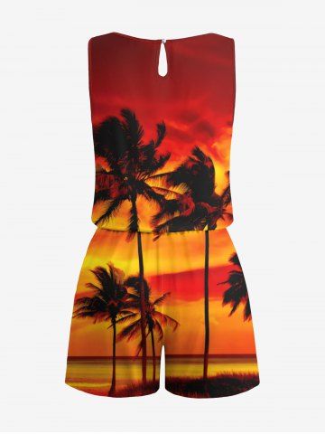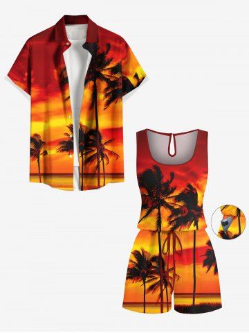 Tenues Hawaïennes Assorties > Ensemble chemise et barboteuse hawaïennes assorties, tenue de plage grande taille, imprimé cocotiers, ciel ombré, pour couples