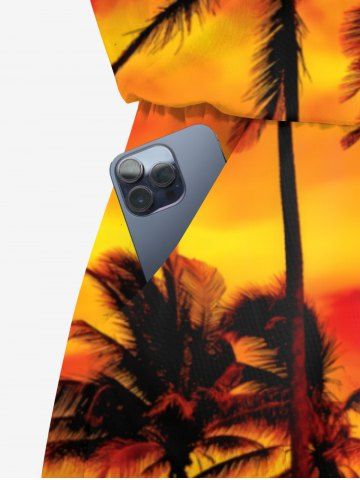 Ensemble chemise et barboteuse hawaïennes assorties, tenue de plage grande taille, imprimé cocotiers, ciel ombré, pour couples - Orange Foncé