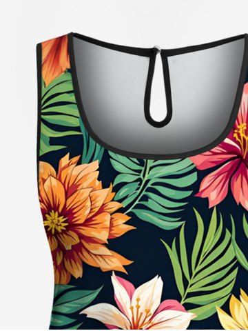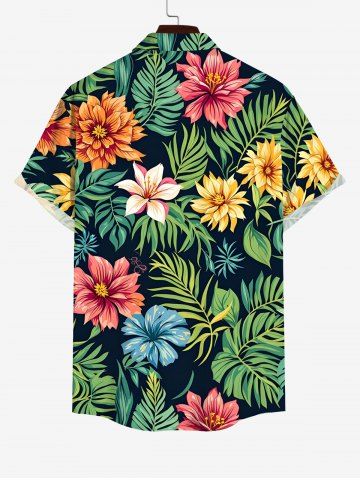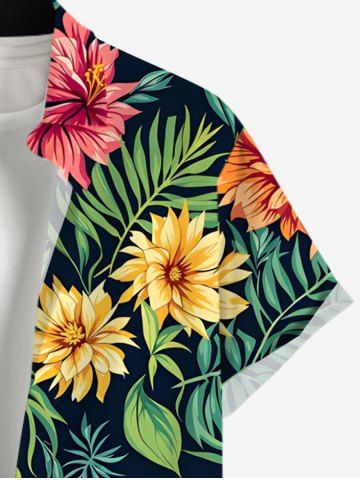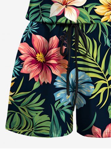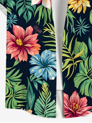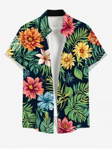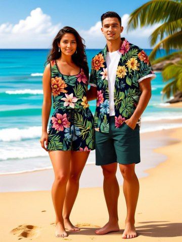 Tenues Hawaïennes Assorties > Ensemble chemise et barboteuse hawaïennes assorties, grande taille, tenue de plage à imprimé feuilles tropicales et fleurs pour couples