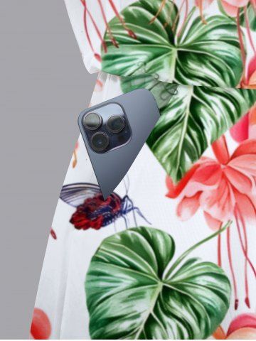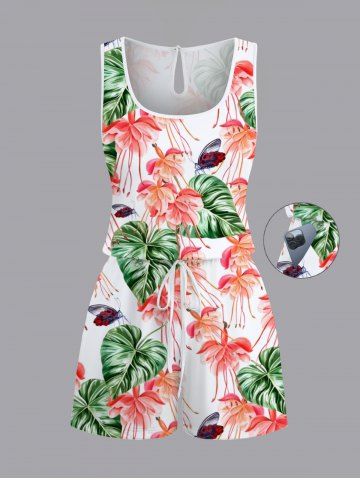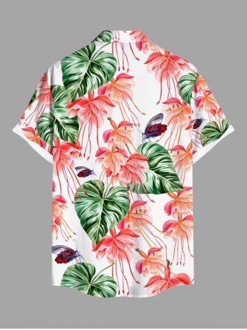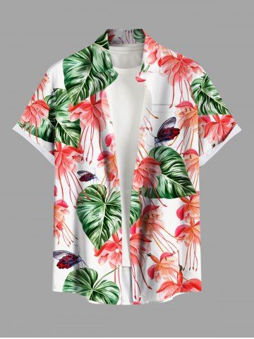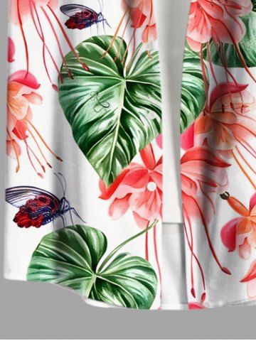 Ensemble chemise et barboteuse hawaïennes assorties, tenue de plage grande taille, imprimé feuilles tropicales, fleurs et insectes, pour couples - Blanc - Blanc