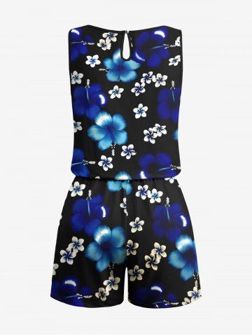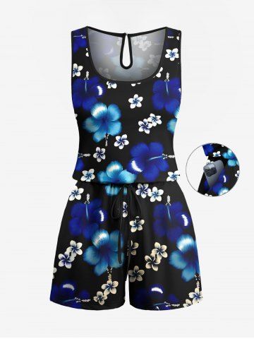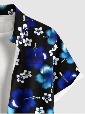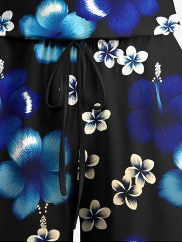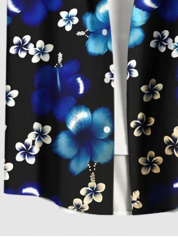 Ensemble chemise hawaïenne et barboteuse grande taille, tenue de plage assortie, imprimé fleurs d'hibiscus ombré, pour couples - Bleu Profond
