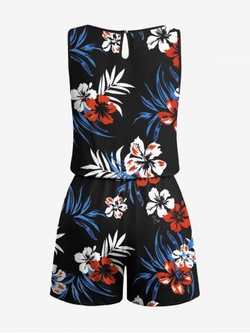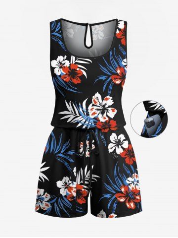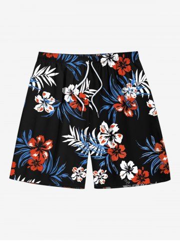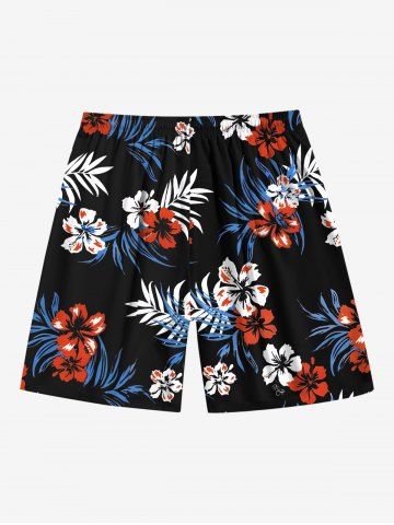 Ensemble chemise hawaïenne, short et barboteuse grande taille, imprimé feuilles tropicales et hibiscus, pour couple - Noir - Noir