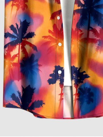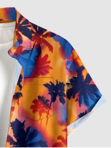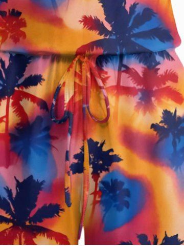 Ensemble de plage assorti chemise hawaïenne et barboteuse grande taille, imprimé tie-dye cocotier pour couples - Brun Légère - Marron Clair