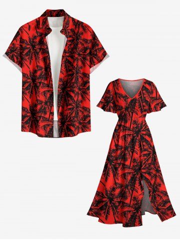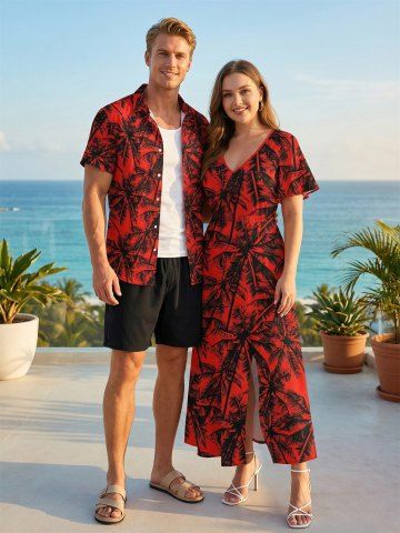 Ensemble de plage hawaïen assorti grande taille à imprimé cocotier pour couples - Rouge - Rouge
