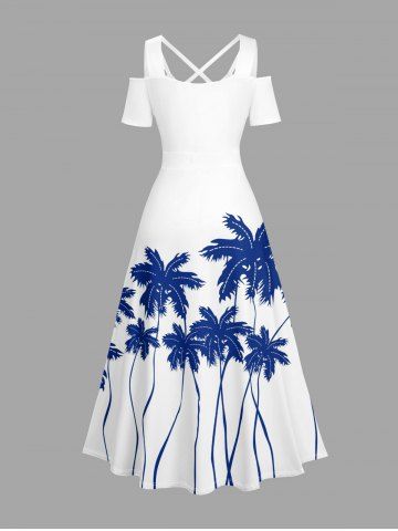 Ensemble de plage hawaïen assorti grande taille à imprimé cocotier pour couples - Blanc - Blanc
