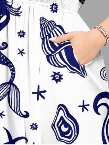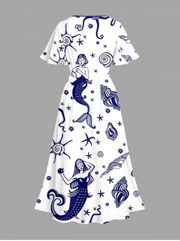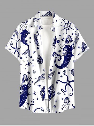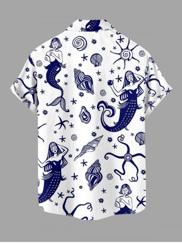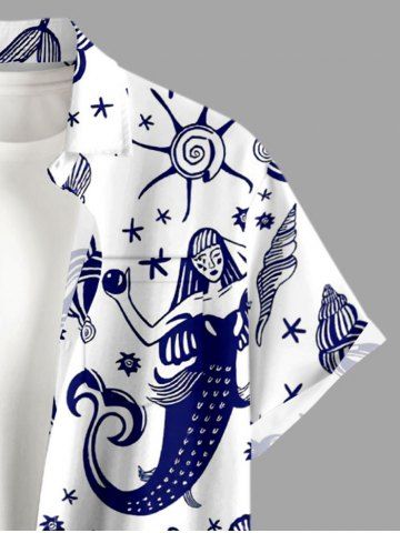 Ensemble de plage hawaïen assorti grande taille à imprimé coquillage sirène pour couples - Blanc - Blanc