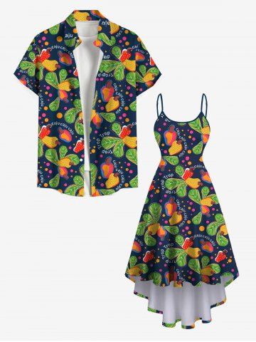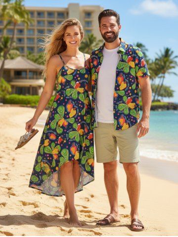 Tenues Hawaïennes Assorties > Ensemble de plage hawaïen assorti grande taille à imprimé feuilles de cajou pour couples