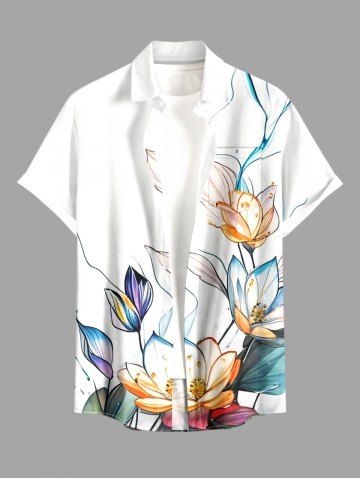 Ensemble de plage hawaïen assorti grande taille à imprimé feuilles de lotus pour couples - Blanc - Blanc