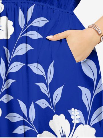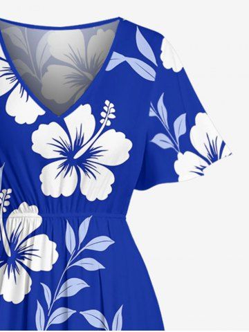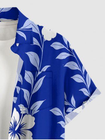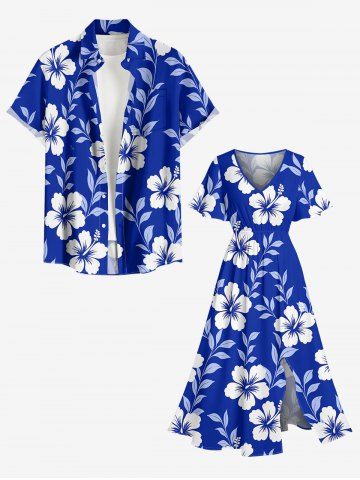 Ensemble de plage hawaïen assorti grande taille à imprimé feuilles et fleurs d'hibiscus pour couples - Bleu - Bleu