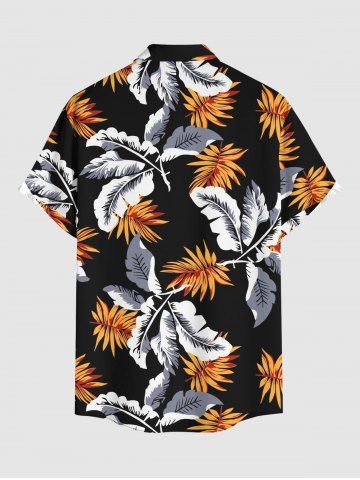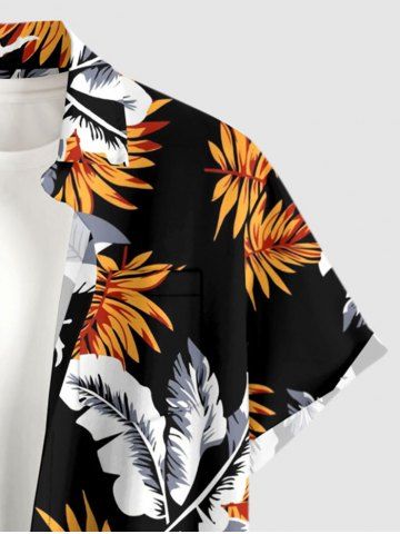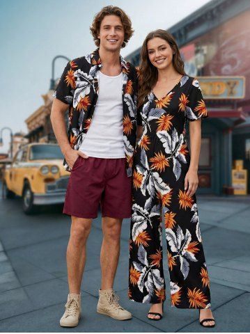 Ensemble de plage hawaïen assorti grande taille à imprimé feuilles tropicales pour couples - Noir - Noir
