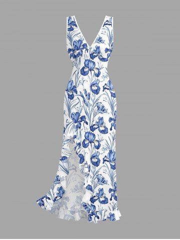 Ensemble de plage hawaïen assorti grande taille à imprimé fleurs d'iris pour couples - Bleu - Bleu