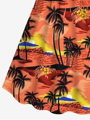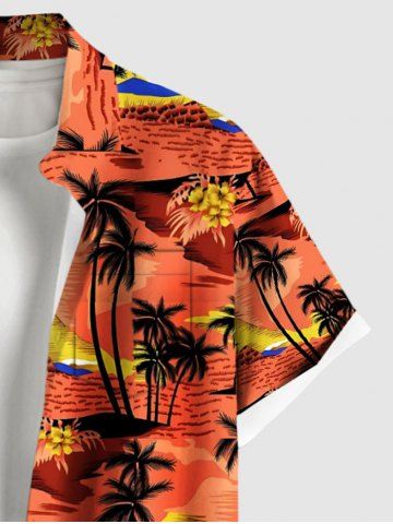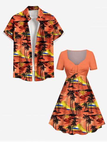 Ensemble de plage hawaïen assorti grande taille à imprimé fleurs de cocotier pour couples - Orange Foncé