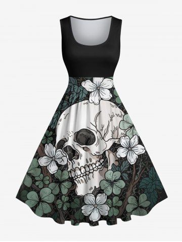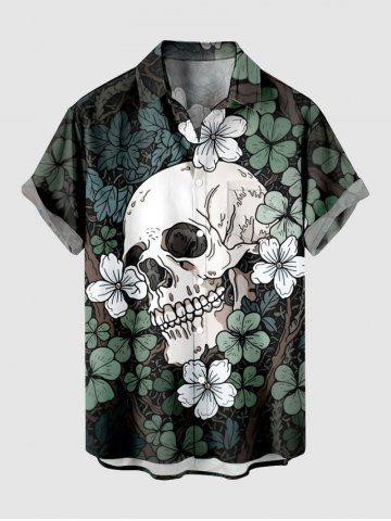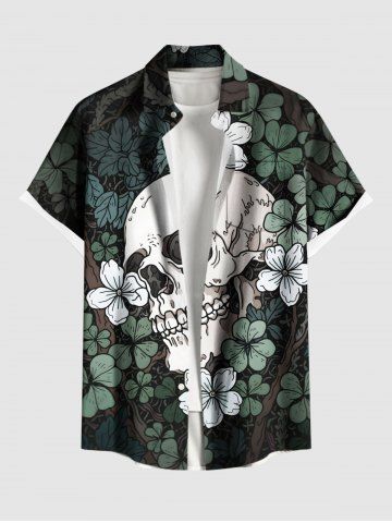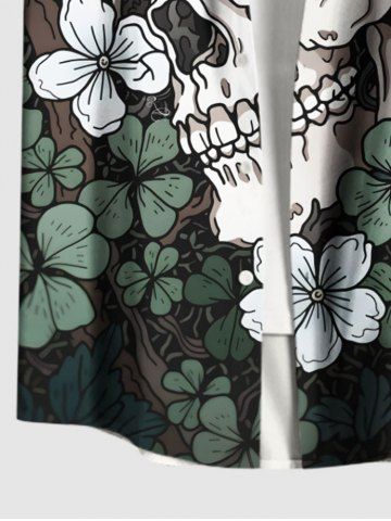 Ensemble de plage hawaïen assorti grande taille à imprimé fleurs et crânes pour couples - Noir - Noir