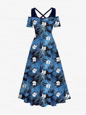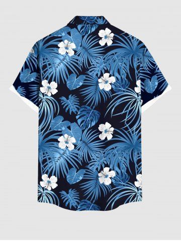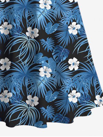 Ensemble de plage hawaïen assorti grande taille à imprimé fleurs et feuilles de cocotier pour couples - Bleu - Bleu