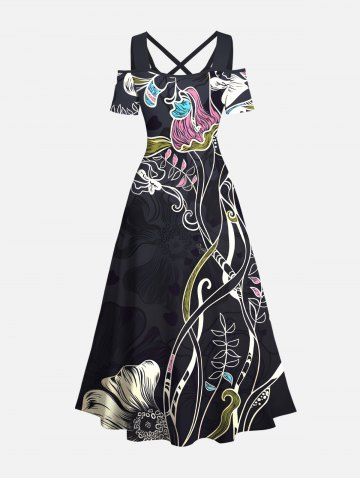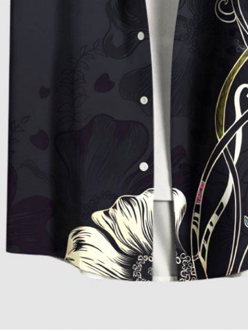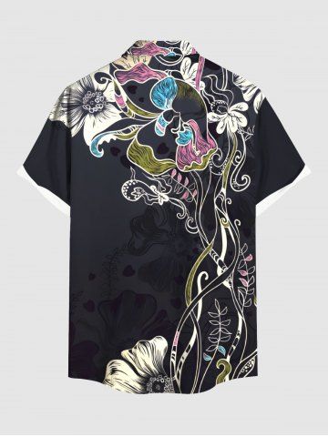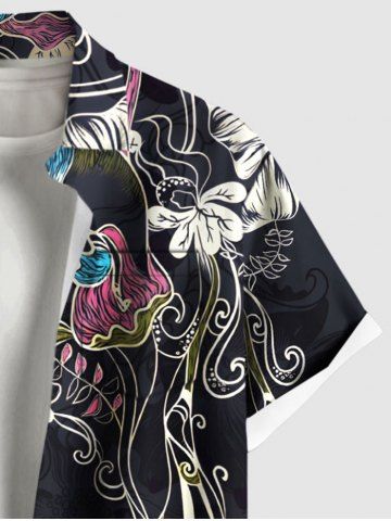 Ensemble de plage hawaïen assorti grande taille à imprimé fleurs et feuilles pour couples - Noir - Noir