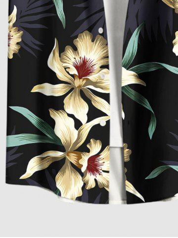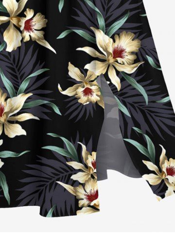 Ensemble de plage hawaïen assorti grande taille à imprimé fleurs et feuilles pour couples - Noir - Noir