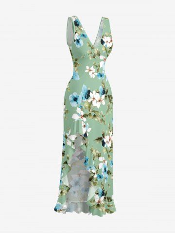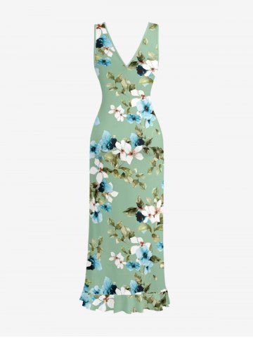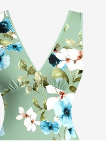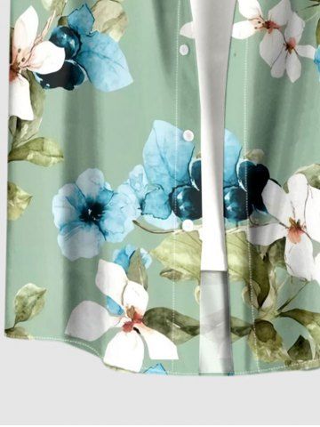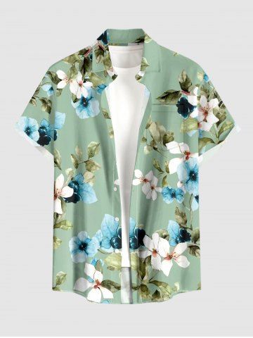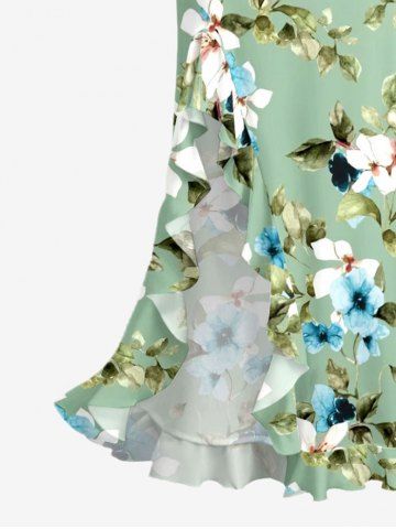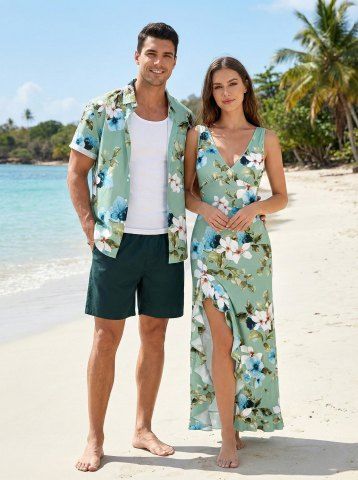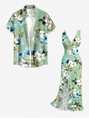Ensemble de plage hawaïen assorti grande taille à imprimé fleurs et feuilles pour couples - Vert Clair - Vert Clair