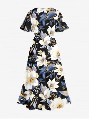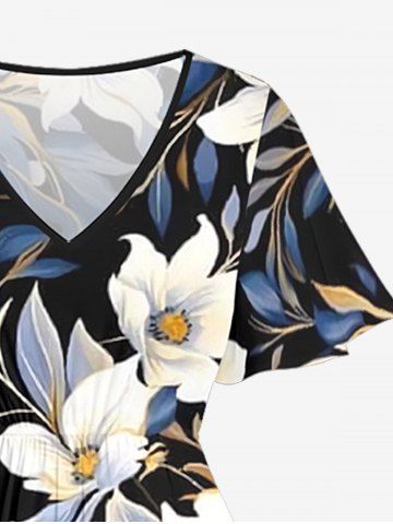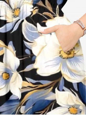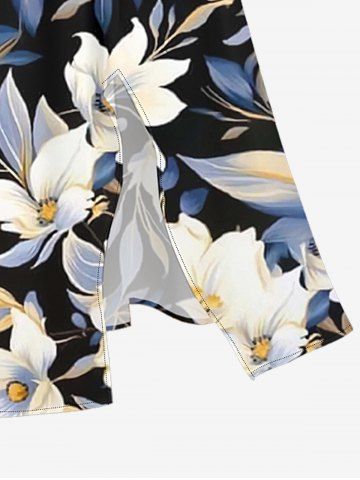 Ensemble de plage hawaïen assorti grande taille à imprimé fleurs et feuilles pour couples - Noir - Noir