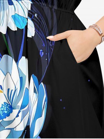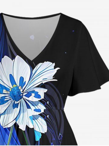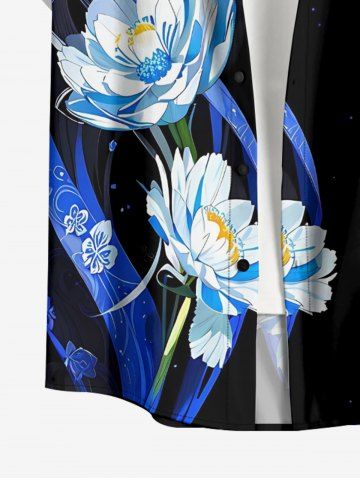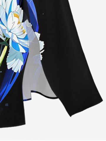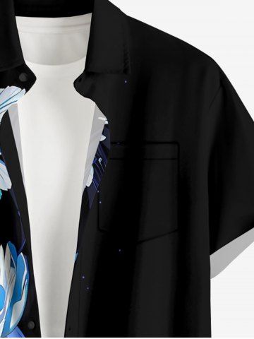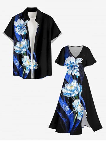Ensemble de plage hawaïen assorti grande taille à imprimé fleurs et feuilles pour couples - Noir - Noir