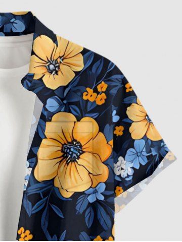 Ensemble de plage hawaïen assorti grande taille à imprimé fleurs et feuilles pour couples - Noir - Noir