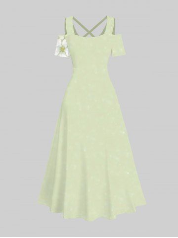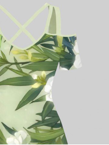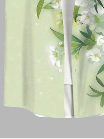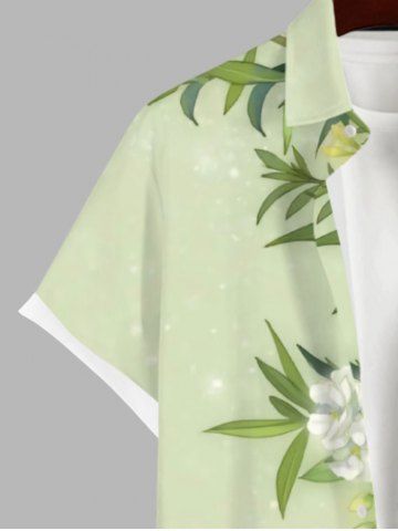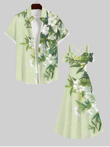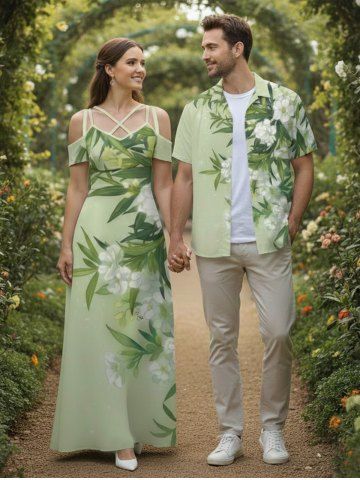 Ensemble de plage hawaïen assorti grande taille à imprimé fleurs et feuilles pour couples - Vert Clair - Vert Clair