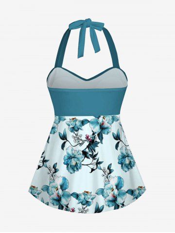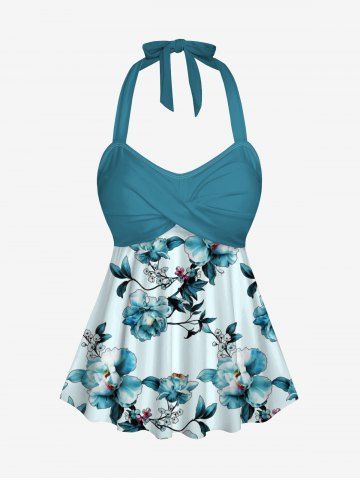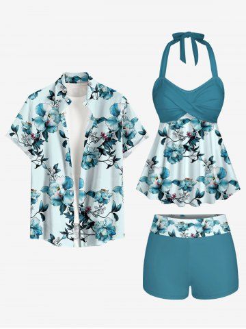 Ensemble de plage hawaïen assorti grande taille à imprimé fleurs et feuilles pour couples - Turquoise - Turquoise