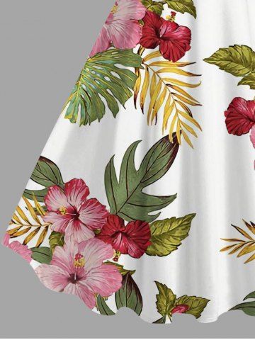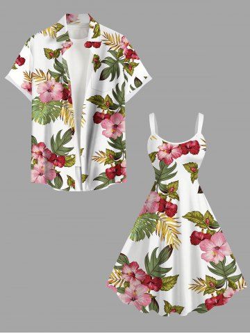Ensemble de plage hawaïen assorti grande taille à imprimé floral d'hibiscus tropical pour couples - Blanc - Blanc