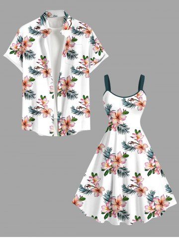 Ensemble de plage hawaïen assorti grande taille à imprimé floral d'hibiscus tropical pour couples - Blanc - Blanc
