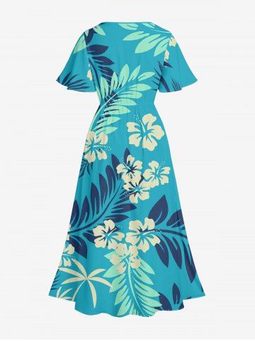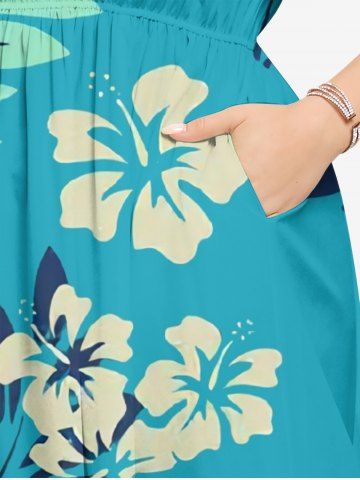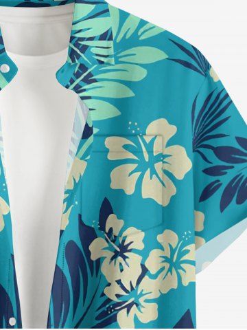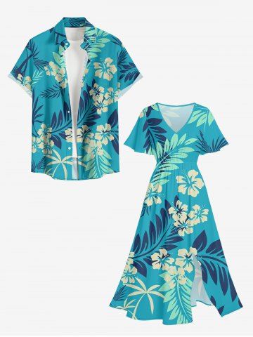 Ensemble de plage hawaïen assorti grande taille à imprimé floral d'hibiscus tropical pour couples - Turquoise - Turquoise