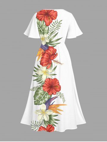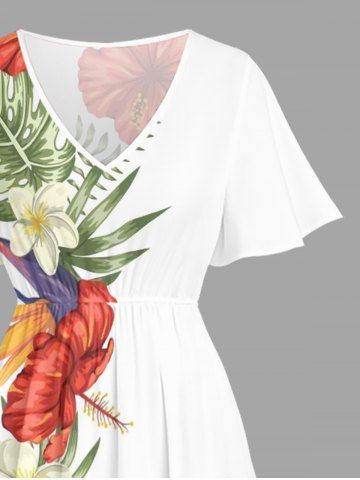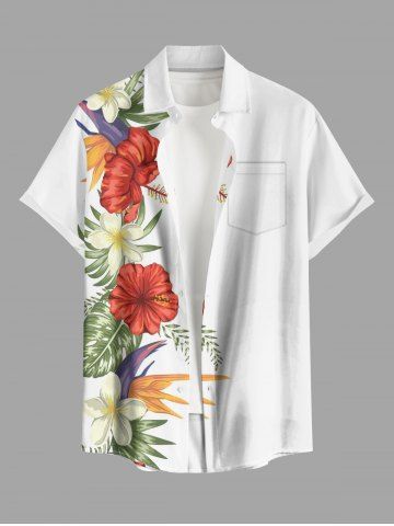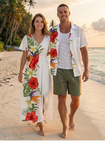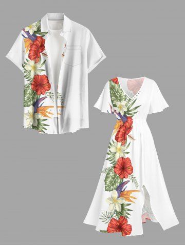 Ensemble de plage hawaïen assorti grande taille à imprimé floral d'hibiscus tropical pour couples - Blanc - Blanc