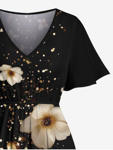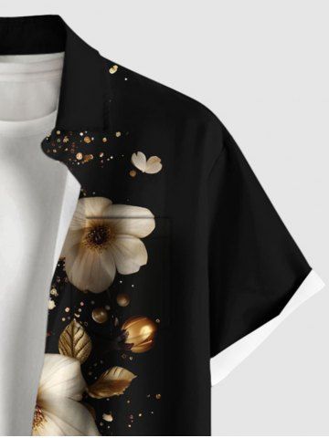 Ensemble de plage hawaïen assorti grande taille à imprimé floral doré pour couples - Noir - Noir