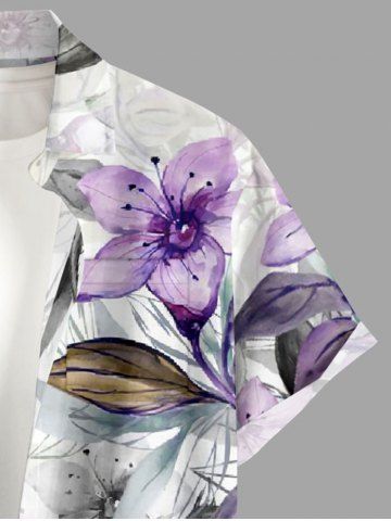 Ensemble de plage hawaïen assorti grande taille à imprimé floral et feuilles ombré pour couples - Pourpre - Pourpre