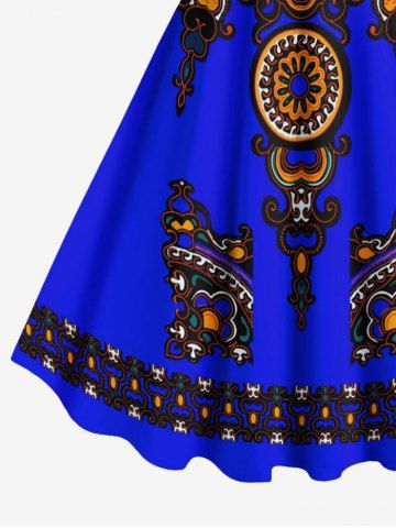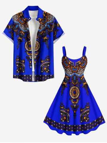 Ensemble de plage hawaïen assorti grande taille à imprimé floral ethnique miroir pour couples - Bleu - Bleu