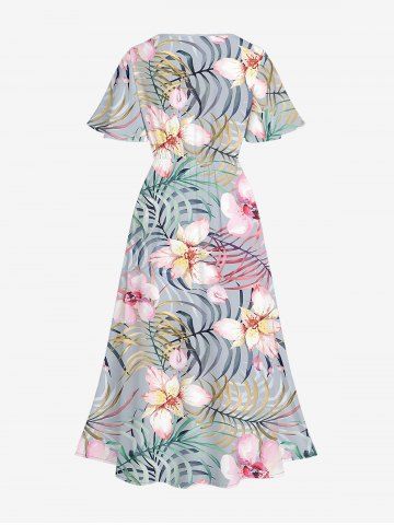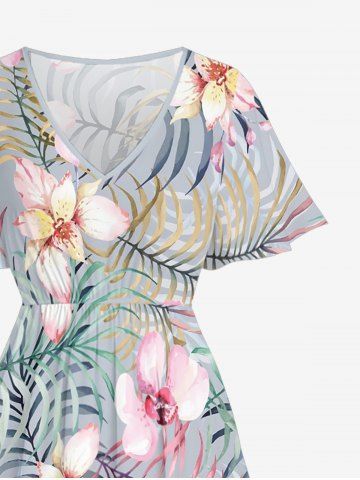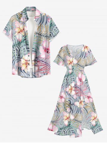 Ensemble de plage hawaïen assorti grande taille à imprimé floral tropical pour couples - Gris Foncé - Gris Foncé