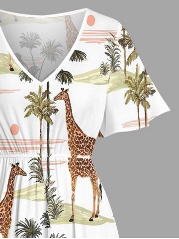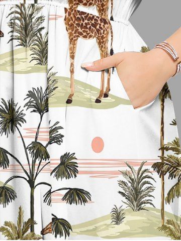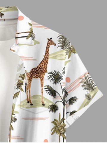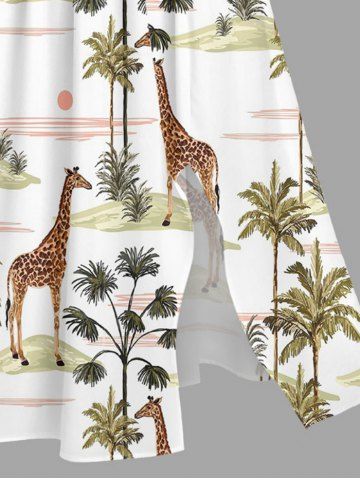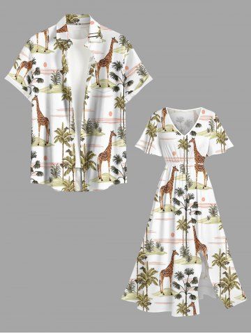 Ensemble de plage hawaïen assorti grande taille à imprimé girafe, cocotier et soleil pour couples - Blanc - Blanc