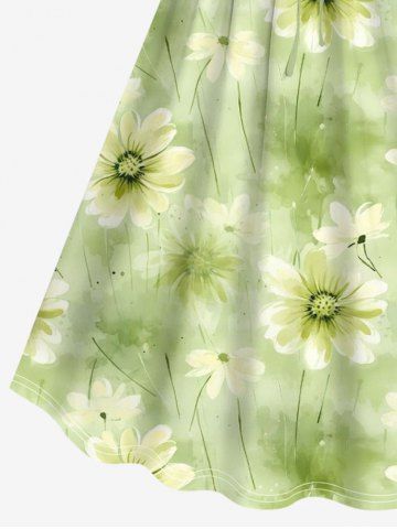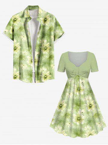 Ensemble de plage hawaïen assorti grande taille à imprimé marguerites pour couples - Vert - Vert