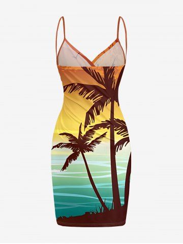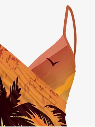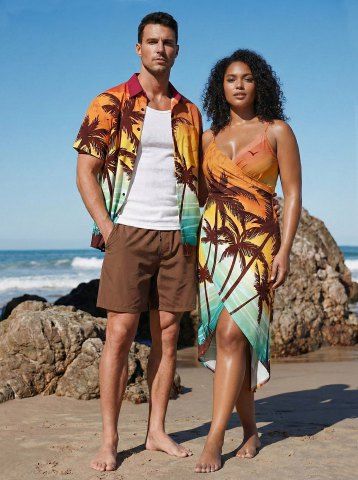 Tenues Hawaïennes Assorties> Ensemble de plage hawaïen assorti grande taille à imprimé ombré de cocotiers pour couples