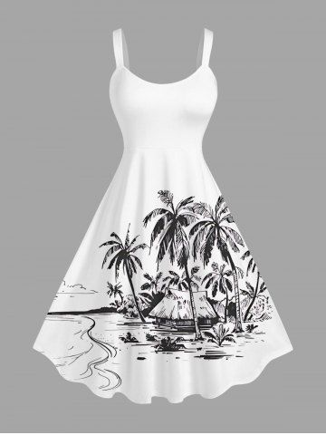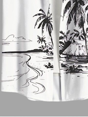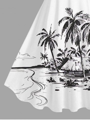 Ensemble de plage hawaïen assorti grande taille à imprimé paysage marin et cocotiers pour couples - Blanc - Blanc