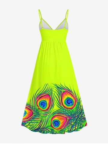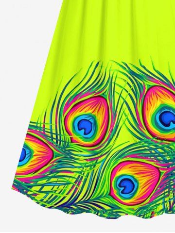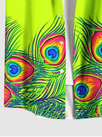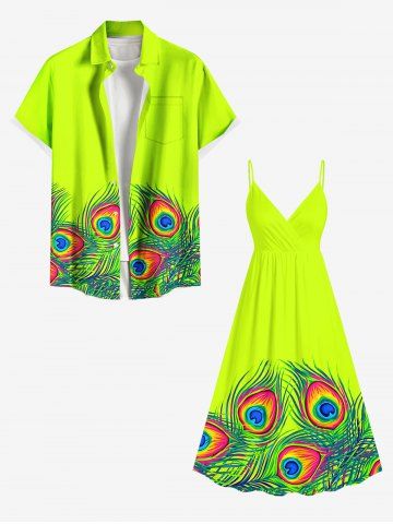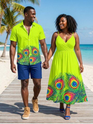 Ensemble de plage hawaïen assorti grande taille à imprimé plumes de paon pour couples - Vert - Vert